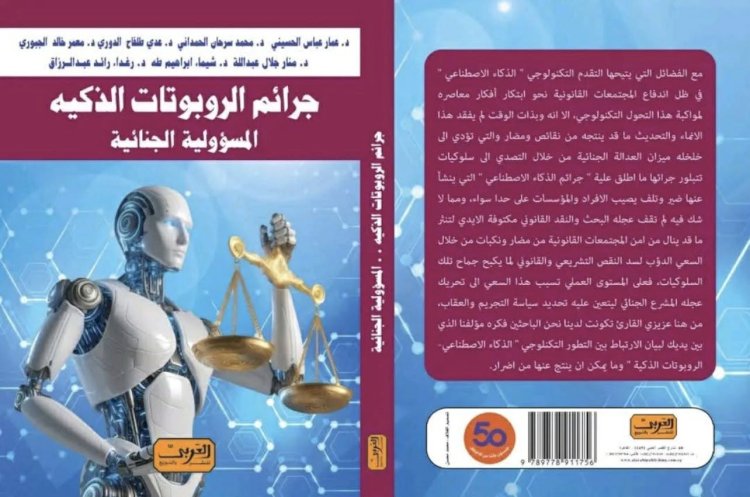وفي هذا الإطار العلمي والقانوني الهام صدر للأستاذ الدكتور عمار عباس الحسيني عميد كلية القانون في جامعة المستقبل في العراق كتاباً مشتركاً بعنوان جرائم الروبوتات الذكية - المسؤولية الجنائية والذي جاء ليضع حجر الزاوية في معالجة هذه الإشكالات المعقدة من خلال مجموعة من البحوث لنخبة من أساتذة القانون الجنائي في الجامعات العراقية وقد ركز البحث الذي أسهم به الدكتور الحسيني في هذا الكتاب على المسؤولية الجنائية لمنتجي الروبوتات الذكية في دراسة مقارنة تناولت تطويع وتوظيف القواعد القانونية لمسؤولية المنتجين والمصنعين في مجال الروبوتات الذكية وتطبيقات الذكاء الاصطناعي